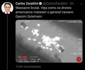 Na manhã desta segunda-feira (6), o deputado federal por São Paulo Carlos Zarattini (PT), publicou no Twitter um vídeo que supostamente seria da ação militar americana que terminou com a morte do general iraniano Qassim Suleimani.