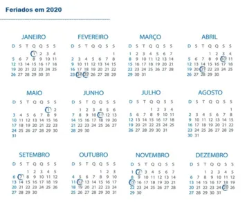 O ano de 2020 promete mais dias de descanso do que 2019. Dos 9 feriados nacionais, 8 caem em dias de semana e seis podem ser emendados com sábados e domingos. Além dos feriados nacionais, a lista incluir os pontos facultativos como Carnaval e Corpus Christi. Estão de fora da lista os feriados estaduais e municipais.