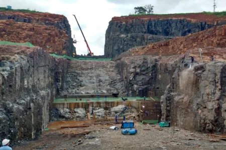 Em paralelo, seguem os trabalhos de escavação, preparo de fundações e concretagem de outras estruturas da usina. Uma das frentes de serviço que está bastante adiantada é a de construção da estrutura de desvio do rio pela margem esquerda. O desvio completo está previsto para o mês de abril e é necessário para que as equipes possam concluir a construção do barramento.