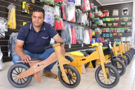Tendo como matéria-prima madeira de reflorestamento, a bicicleta é fabricada por meio de um processo totalmente artesanal. Além de contribuir com o meio ambiente, é mais leve e mais durável do que as convencionais. “Sem ter os pedais para aprender a andar de bicicleta, a criança se concentra no equilíbrio, habilidade que com as rodinhas, pedal e corrente é a última a ser aprendida”, diz o empresário.