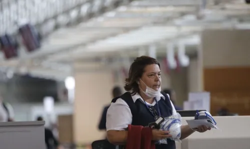 Passageiros e funcionários circulam vestindo máscaras contra o novo coronavírus (Covid-19) no Aeroporto Internacional Tom Jobim- Rio Galeão - Fernando Frazão/Agência Brasil