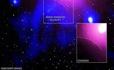 Na época, os observadores suspeitaram que isso representava parte da parede de uma cavidade no gás quente criado por jatos do buraco negro supermassivo. No entanto, eles descartaram essa possibilidade, em parte porque seria necessária uma enorme quantidade de energia para o buraco negro criar uma cavidade tão grande.