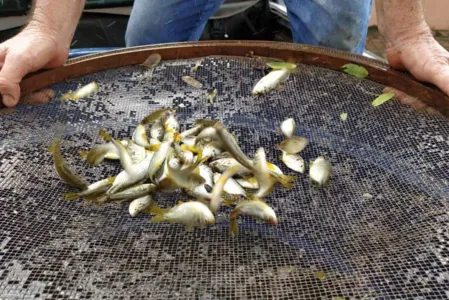 Alevinos de lambaris são soltos em córregos e riachos que podem ser utilizados pelo mosquito para depositar ovos (Foto: AEN)