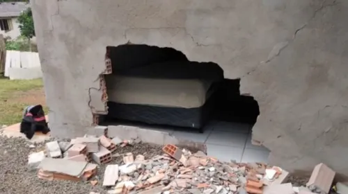 Um casal levou um susto enquanto dormia em Herval d'Oeste, no Oeste catarinense. Um carro invadiu a casa deles, destruiu a parede do quarto e atingiu a cama. O caso ocorreu na madrugada de sábado (7) e na manhã desta segunda-feira (9) os feridos estavam bem.