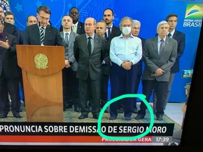 Guedes, era ainda o único integrante do governo de máscara e sem paletó no palanque do Palácio do Planalto. Em diversas mensagens, internautas publicaram fotos do pé do ministro que realmente aparentava estar descalço, apenas de meia.