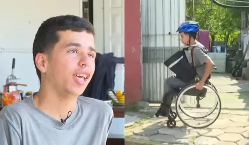 Samuel Soares Araújo, um jovem de 19 anos, viralizou nas redes sociais ao mostrar o seu dia a dia como entregador usando cadeira de rodas em São José (SC). Em 5 de março, ele publicou um vídeo destacando o primeiro dia de trabalho por aplicativos.