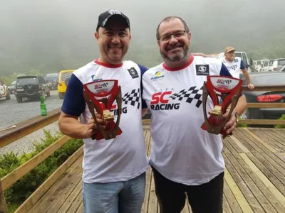 O piloto Leandro Pereira Moor ao lado do navegador Cláudio Roberto Flores (de Itajaí, SC), começou a Copa SC Racing com o pé direito. Neste sábado (17/03), o apucaranense fez bonito na cidade de São Bento do Sul-SC, e subiu no primeiro lugar do pódio da categoria máster. O evento, realizado pela SC Racing, reuniu 83 veículos distribuídos entre as categorias máster, graduado, turismo, novatos 4x4, pais e filhos 4x4, e ainda, universitário-graduado, universitário-novato e universitário-família.