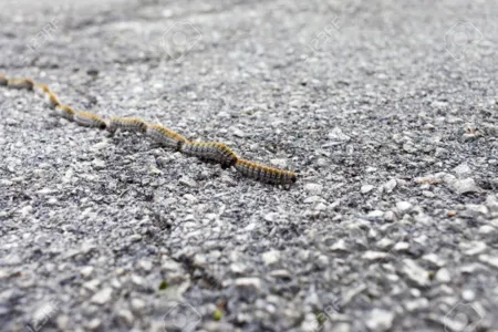'Comboio' de lagartas é flagrado atravessando estrada na Austrália
