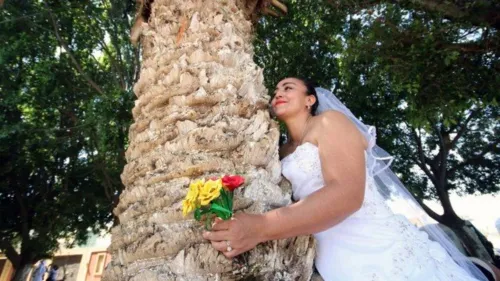 Cerimônia de casamento entre mulher e árvore no México Foto: AFP