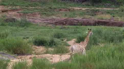 O homem decidiu gravar o vídeo ao ver a girafa no chão, mas ao se aproximar pérecebeu a presença de um crocodilo de uns quatro ou cinco metros que tinha a pata do animal na sua boca.
