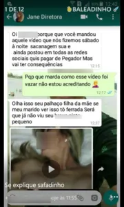 “Alguém foi até um site com vídeos pornográficos, que até já identifiquei qual é, achou uma mulher parecida comigo em cenas de sexo, e postou no Whatsapp como se fosse eu. Essa pessoa ainda foi até o meu Facebook, pegou uma foto minha e fez uma montagem como se eu estivesse mandando uma mensagem para um ex-aluno cobrando por que ele divulgou o vídeo. Colocaram até a foto dele ao fundo. Tudo um absurdo. Não sou eu no vídeo, o corpo não é meu e nem escrevo daquele jeito”, contou.