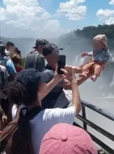 Turista levanta bebê sobre grade de proteção nas Cataratas e causa tensão