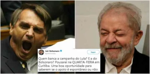 “Quem banca a campanha do Lula? E a do Bolsonaro? Pousarei na QUARTA-FEIRA em Curitiba. Uma boa oportunidade para saberem se o apoio é espontâneo ou não”, tuitou Bolsonaro.