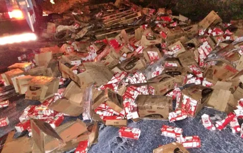 Uma empresa de segurança foi até o local para evitar o saque da carga.